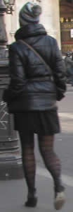 Parisians dress-up their legs in black, lacy tights. Paired with skirts, shorts and even business suits.